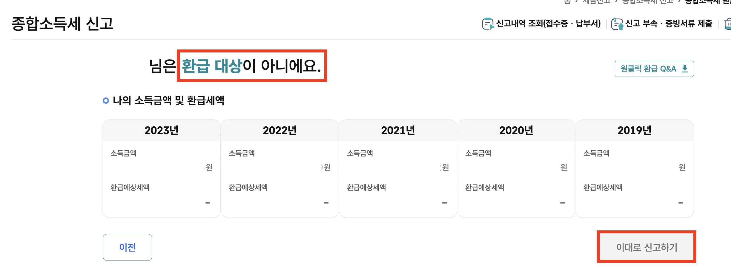 3. 환급 대상 확인 후 ‘이대로 신고하기’