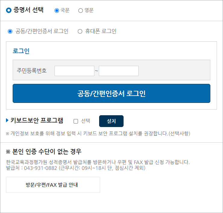 - 공인인증서: 전통적인 방법으로 인증 가능