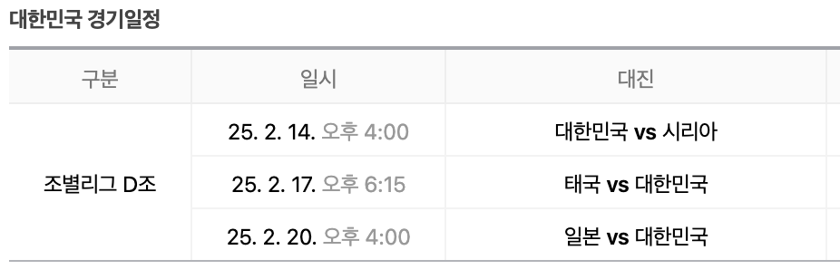 경기 일정과 중계 정보는 변동될 수 있으니, 공식 채널을 통해 최신 정보를 확인하세요! 대한민국 대표팀의 선전을 함께 응원해 주세요!
