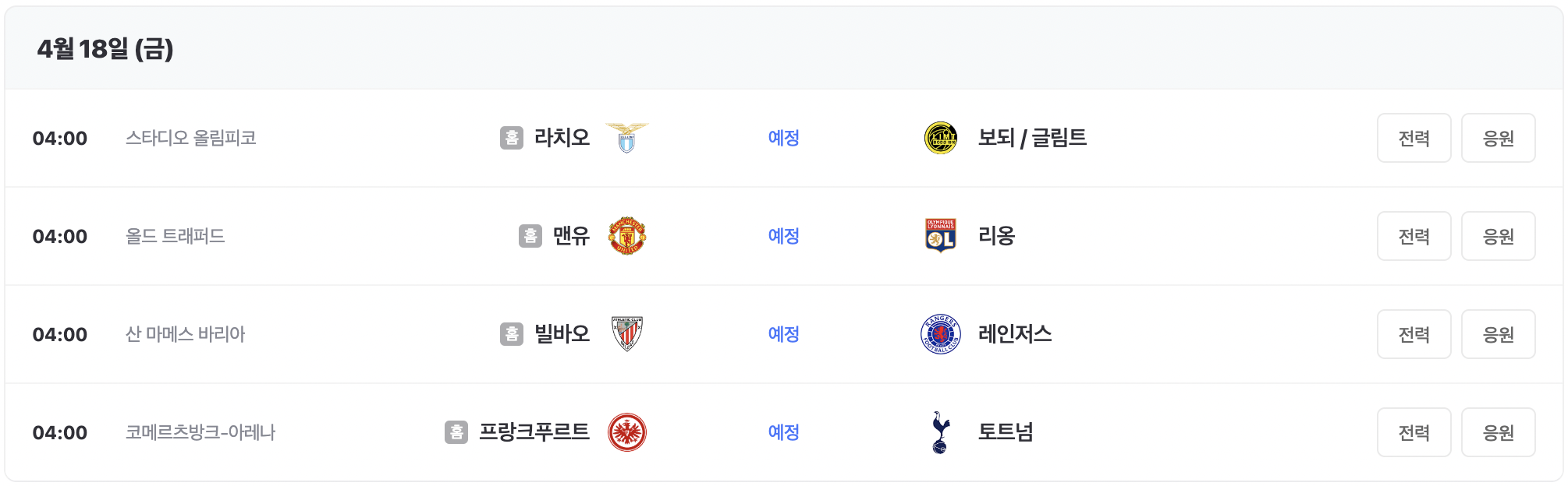 8강에는 토트넘 홋스퍼, 맨체스터 유나이티드, 프랑크푸르트, 리옹 등 강팀들이 포진해 치열한 경기가 예상됩니다.